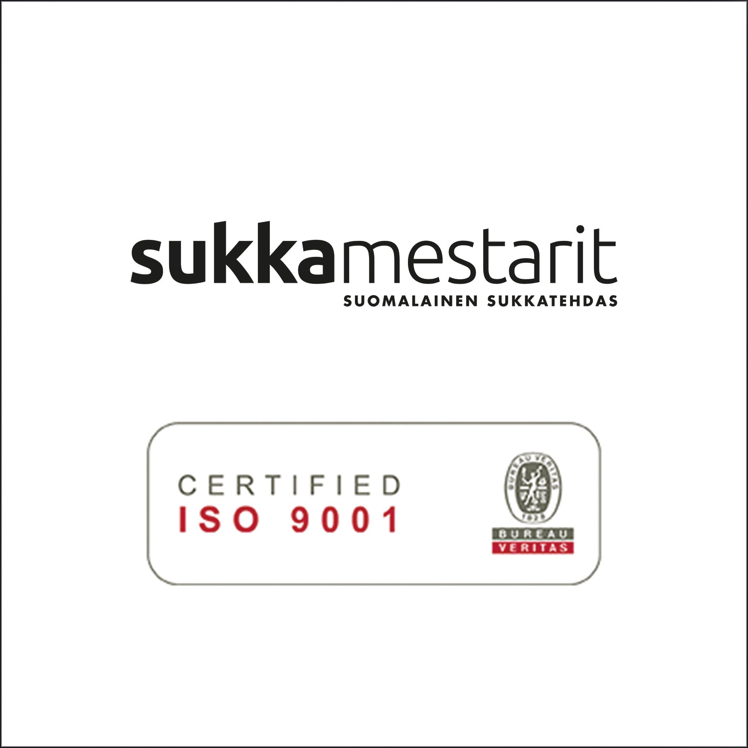 ISO 9001 - on sitoutumista asiakaskeskeisyyteen ja laatuun, joka tukee Sukkamestareiden omia arvovalintoja, jossa laatu ja asiakas on keskiössä.